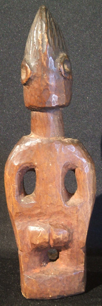 Twins are considered to be powerful spirits, so upon the death of one or both twins, the ibeji, a small wood figure, is carved to represent the deceased child. The ibeji is treated just as if the child were still alive. It is bathed. clothed, fed and generally looked after by the mother to assure that only good fortune is brought to the family. Ibejis are not carved to look like children but instead they appear as either male or female adults. |