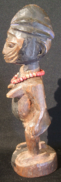 Twins are considered to be powerful spirits, so upon the death of one or both twins, the ibeji, a small wood figure, is carved to represent the deceased child. The ibeji is treated just as if the child were still alive. It is bathed. clothed, fed and generally looked after by the mother to assure that only good fortune is brought to the family. Ibejis are not carved to look like children but instead they appear as either male or female adults. |